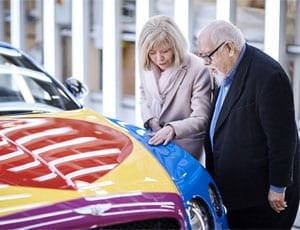 Based on a 2016 Bentley Continental GT V8 S convertible, this anything but discreet vehicle features Sir Peter’s trademark St James red heart motif hand-painted onto a yellow bonnet as well as his signature on each of its headrests. A collage of bright shades decorates the exterior and the cabin is described as being “an expression of individuality” also with each seat trimmed in a different hide colour.