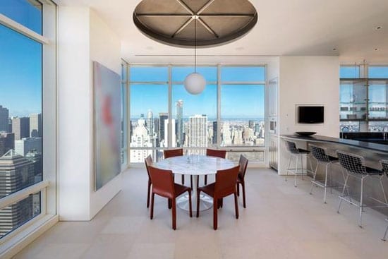 Built in 2005 and reconfigured by Gwathmey Siegel Kaufman Architects LLC, the 51st and 52nd floor duplex is located in the 105-unit One Beacon Court building that forms part of the Bloomberg complex. Described as being the “most sophisticated, stunning and elegant apartment in New York City” by agents Corcoran, the 9,000 square foot apartment includes 4 bedroom suites and 5.5 bathrooms. A double height living room features 24-foot high ceilings whilst the true highlight has to be the views across the city. Cohen paid £14.8 million ($24 million) for the property in 2005.