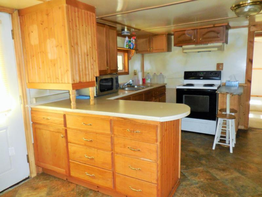 Standing on a plot of 21.58 acres, the 640 square foot cedar shingle clad house has been “updated” (to a degree) and has one bedroom and one bathroom currently. There is “lots of potential for expansion” and of the smallholding, realtors Berkshire Hathaway announce: “Come enjoy!”
