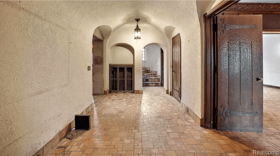 Bizarre Detroit house built of ‘Cotswold stone’ marketed for sale as a “19th century United Kingdom castle;” its price is 48% lower than when last sold in 2021 and its interior is beyond curious