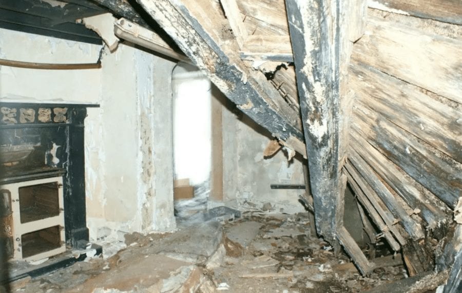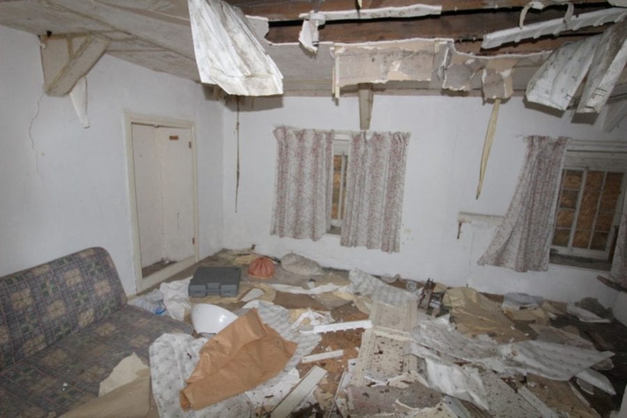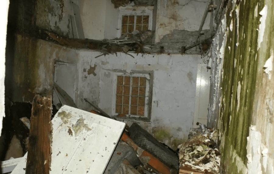 Whilst this seems surprisingly cheap compared to the £375,000 ($484,000, €448,000 or درهم1.8 million) single space in nearby Ennismore Gardens we featured in February, elsewhere, for those looking to park a lot less money into a serious renovation project, agents Dai Lewis are about to auction what appears from the exterior to be a “quaint” Georgian cottage. Built as an estate manager’s cottage in the late 1700s, 4-bedroom Penbont, near Llandysul in Ceredigion, Wales stands in private gardens adjoining the River Teifi and National Trust woodland, but literally is collapsing inside.