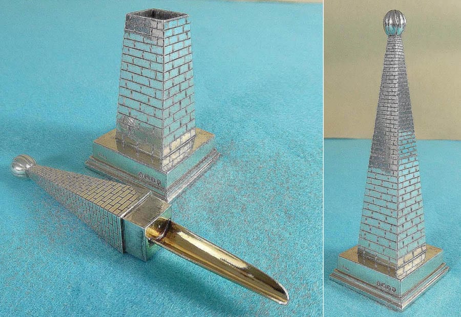 Given his admission about what he’s previously put up his nose, this sterling silver novelty cocaine powder tower and scoop could be the perfect thing for Michael Gove’s desk. Hallmarked by royal silversmith Benjamin Smith, London, 1833, the pyramidal obelisk with brickwork decoration is 10.8cm tall and is offered by Daniel Cotton. He can be contacted at [email protected] or on +44 (0) 776 887 6825.