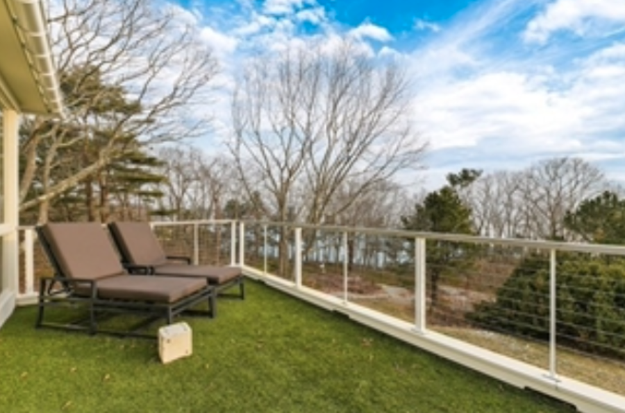 Now in 2022 – The not so classy terrace beyond the master bedroom features grass as fake as the stories that the mucky madam tried to use against her sex trafficked victims.