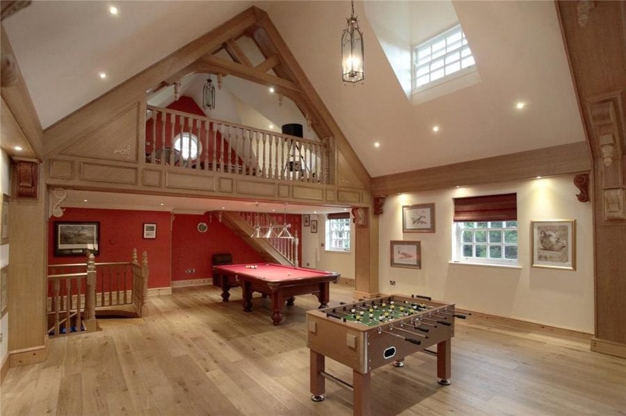 Standing on a plot of just under 11 acres where a probably perfectly charming yet subsequently bastardised residence was constructed in 1864, the ‘hall’ itself extends to about 20,000 square foot. It includes 5 reception rooms, a cinema room, a games room, a music room, an orangery and 8 en-suite bedrooms.