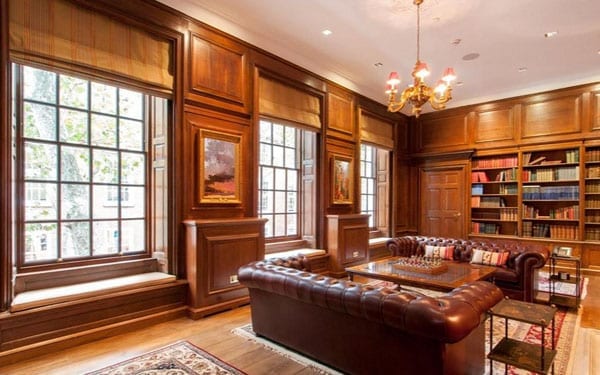 Just as occured in era of Lord and Lady Melchett’s residence, a number of alterations have been made to the house in recent years by the present owner. These include the addition of a grand, elliptical stone staircase and a gym and spa on the fourth floor and now this “miniature palace” (as it was once called by The Daily News) includes not only a 37’5” drawing room but also a panelled library and a travertine stone clad dining room. There are seven bedroom suites and staff accommodation and ideally for politicians, the property is within the Westminster division bell.