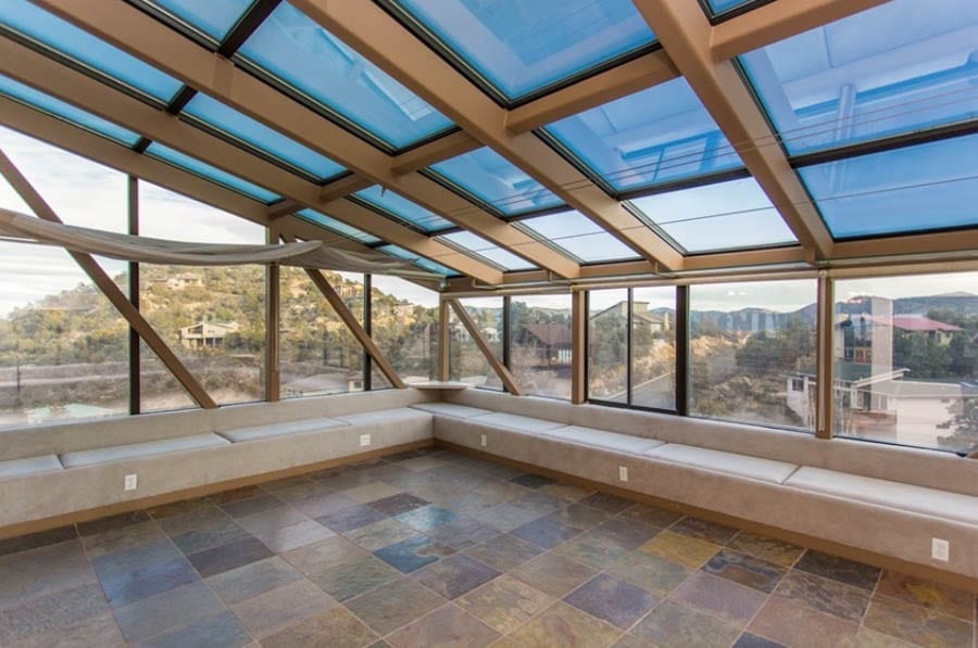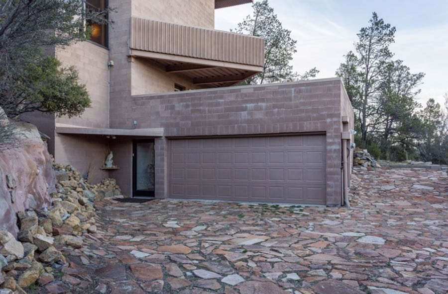 Built to the designs of Calcutta born Sukumar Pal, AIA for his own occupation, Falcon Nest took four years to build and was completed in 1994. This was in part due to high winds making it difficult to use cranes on a site that was already at 5,920-foot at its base on the slopes of 6,514-foot tall Thumb Butte – a prominent geographical feature of the Sierra Prieta mountain range – but also because Pal was so stringent about creating a residence that was not only striking architecturally but also one that was energy efficient.