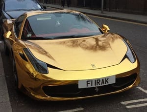 The Ferrari – number plate “F1 IRAK” (which previously was on a more conventional red Ferrari) – should be seen as being an example of all that glitters not being gold. Instead, we’d suggest that it is just a true example of extreme tackiness.