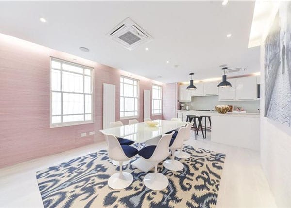 Sold, according to property site Zoopla, for £600,000 in September 1996, £1.4 million in November 2000, £1.7 million in June 2003 and now on the market for £5.5 million ($8.6 million, €7.8 million), the 2,546 square foot low-built house adjoins The Court House – which The Steeple Times featured in March – and includes a large reception room and a dining kitchen to the ground floor and 4 bedrooms and 2 bathrooms to the first floor. On the second floor there is “an indulgent master suite” with a large bedroom, bathroom, dressing room, study, roof terrace and balcony whilst to the rear of the house is a secluded courtyard garden.