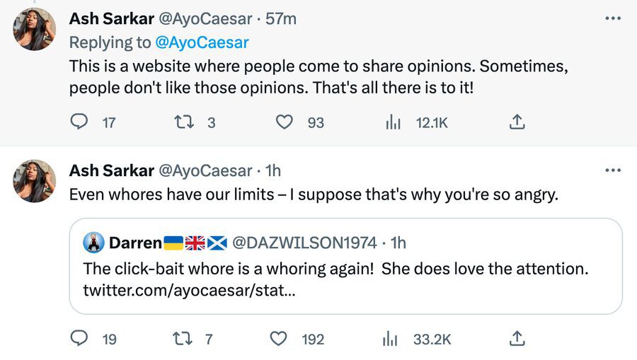 Responding to a much-deserved barrage of criticism on Twitter on Friday, the cretinous creep Sarkar didn’t shut-up. Instead, this insipid no-mark sniped: “This is a website where people come to share opinions. Sometimes, people don’t like those opinions. That’s all there is to it!” The unrequired exclamation mark, frankly, speaks volumes.