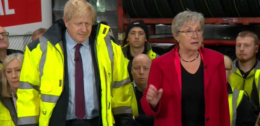 Appearing alongside the former Labour politician and birdbrain of Brexit Gisela Stuart – whom brazenly boasted “Boris and I shared a bus for four months” as she introduced him on Monday afternoon – Boris Johnson made an utter prat of himself at the Fergusons Transport Sunderland depot in Washington, Tyne & Wear.