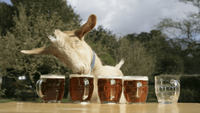 Pictured top – A goat sampling a pint or five of beer in celebration; goats and goat lovers everywhere will now be joining that one and will celebrate the news that the twisted members’ club that organises goat killing has now been stopped from promoting its supposedly never happening in the first place bash at Mark’s Club on 8th September 2022.