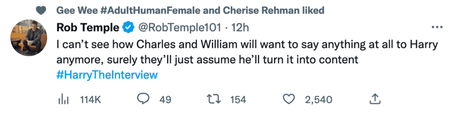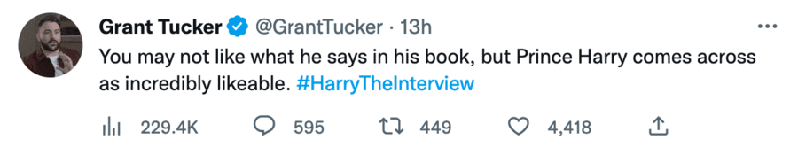 The British public were shocked and stunned undoubtedly last night as they watched the Duke of Sussex bang on about everyone but himself being to blame for his predicament to his mate Tom Bradby on ITV1 last night.