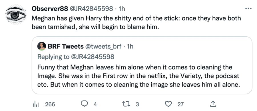 Here’s some great news. A couple of my family members H&M’s age are turning on the Ca!ifornia Clowns. They use to like Harry & were never fans of carrot boobs but, initially believed some of her Bs. They said Harry basically confirmed M’s bullying. My son said that effing Harry put a bullseye on a lot of people. My son admires Princess Anne. My daughter said she has gained a lot of respect for Queen Camilla & Princess Catherine. Omg! They were never Royal fans either. This all thanks to carrot boobs puppet Harry. SHE is behind it all (all,allegedly). Hahaha. I can happily say that Queen Camilla & Princess Catherine are becoming WAY more popular & respected in America..keep the lies coming monte💩💩show clowns. Websites love the BRF not you 2 kooks!