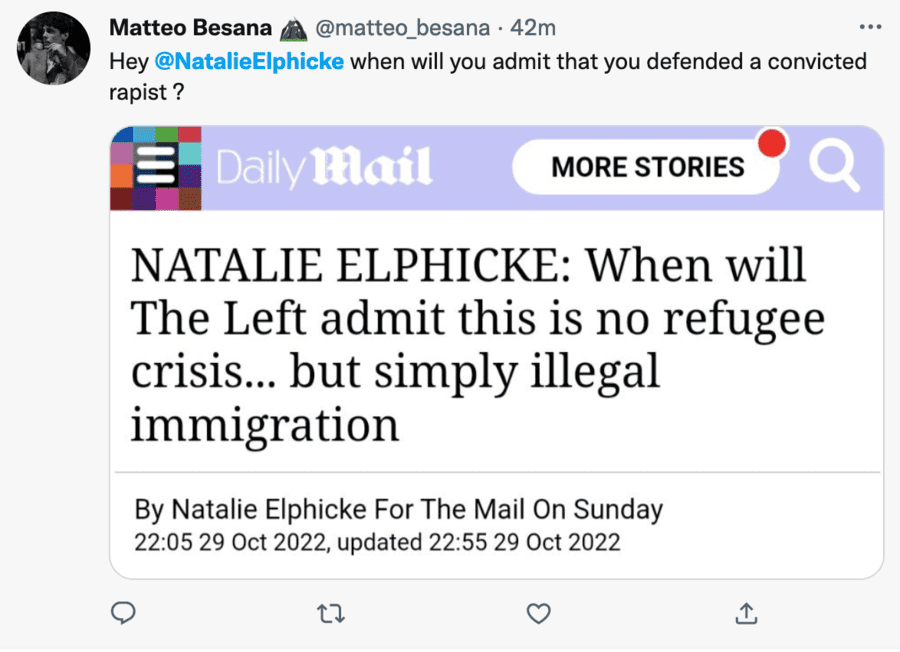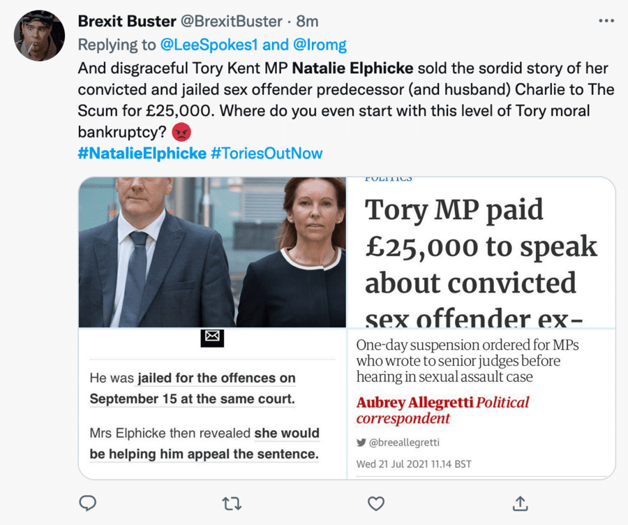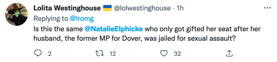 Immigrant hater Natalie Elphicke OBE MP should be reminded that she, the wife of a convicted sex offender, is the noxious nasty who actually deserves to be hated