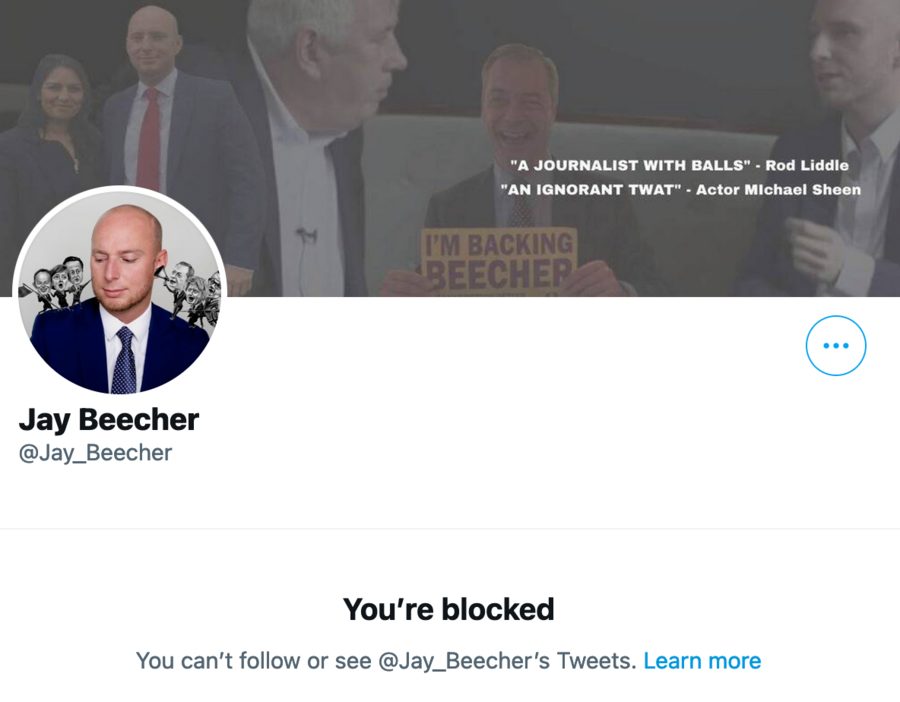 8. He blocks everyone on Twitter —– not just you. He cannot actually fathom the concept of a debate. Didn’t last long in the Conservative Party. Everyone there saw through him in milliseconds.