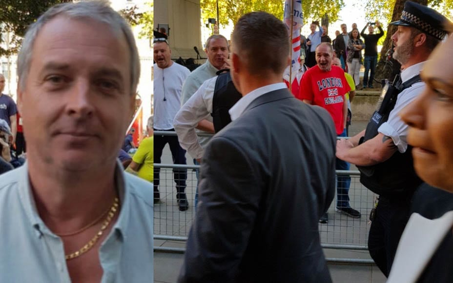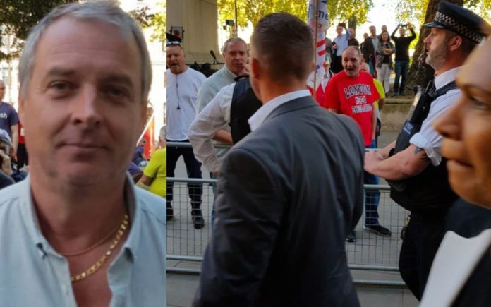 Accompanied by a Burberry clad chav-like woman who was yelling: “Go f**king hang yourself,” this turd-like specimen subsequently had his fat face shared on Twitter by @johnleremainer. His tweet, which read: “Anybody know who he is? Apparently he was shouting ‘Build a gallows’ as Gina Miller left the Supreme Court,” has now been retweeted over 760 times and liked by 380 people also.