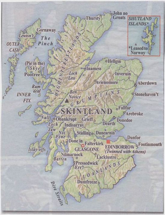Our Picture of the Week, discovered by Peter Burrell, sums up the situation perfectly. Scotland would need to be renamed “Skintland” if Alex Salmond’s ludicrous proposals were to go ahead. Hadrian’s Wall would need to be reinstated and the Scots would need to move themselves into the third world. The independence campaign is a ludicrous waste of money and it should jolly well be halted.