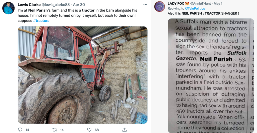 Pictured top – Now former Conservative Member of Parliament for Tiverton and Honiton (2010 – 2022) and former Conservative Member of the European Parliament for South West England (1999 – 2009) Neil Quentin Gordon Parish wrecked his career by watching porn in the House of Commons and getting caught (left), he claimed to be looking for “Dominator tractors” but ended up instead it seems with “dominatrices” (pictured left); “explicit gay porn actor” Lloyd North, one of three councillors for the Campden Ward of The Royal Borough of Kensington And Chelsea since 5th May 2022 (pictured right).