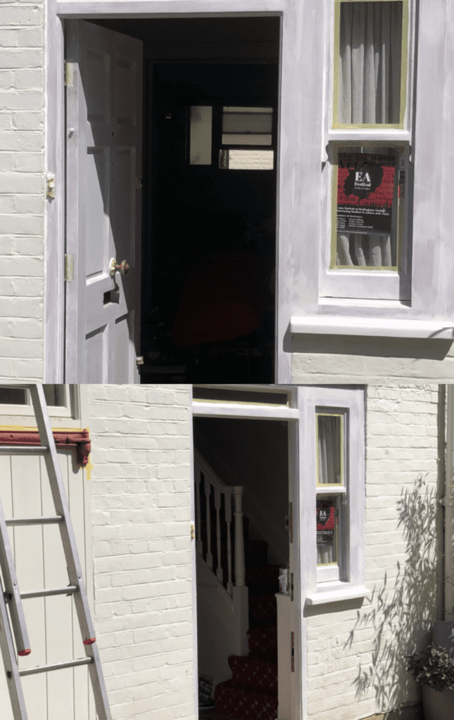 - July 2021 – The Steeple Times reports on repainting work to the outside of the house being underway. An open door reveals the infamous staircase bannister to still be in-situ.