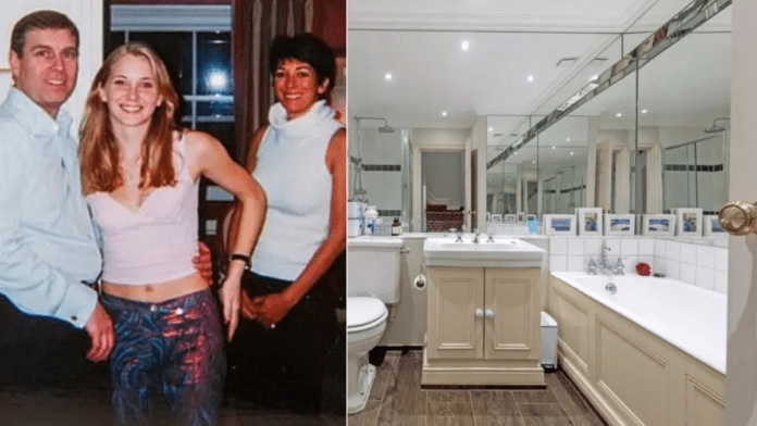 Whilst everybody in the world now knows that the now convicted mucky madam daughter of the pension pot plunderer Robert Maxwell faked a photo of herself at an In-N-Out burger joint in August 2019, photographs of the now somewhat tired bathroom in London, SW1 prove it to be a space where two people could easily have cavorted. In sharing them, they show Prince Andrew’s porky pies for exactly what they are. Two people could very easily have fitted into that rotten tub.