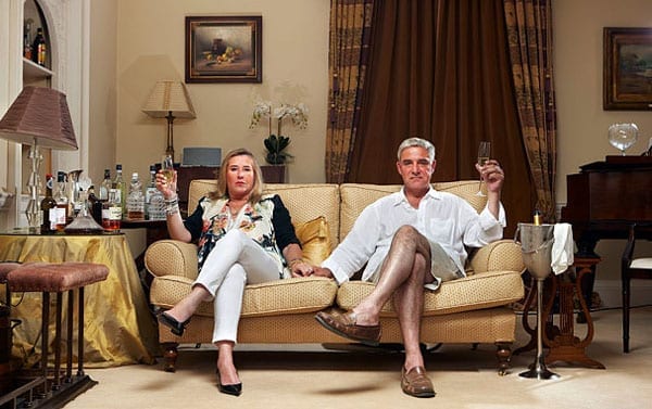 The undoubted stars of Channel 4’s Gogglebox love drinking at their Grade I listed Lutyens designed £3.5 million home in Sandwich, Kent. Be it champagne or gin, the alcohol is always flowing when Dominic and Stephanie Parker watch and share their views on television programmes. Of Downton Abbey, as an example of their booze fuelled commentaries, Stephanie Parker remarked: “I wonder how many windows they’ve got? We’ve got 63” whilst when asked about what people think of them stated: “We are ordinary people, we just happen to live in a bigger house”. The couple have also taken part in the series Four in a Bed, have nearly 100,000 fans on Facebook and use the hashtag #Chinchin on Twitter.