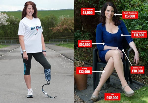 This courageous corporal was hit by a mortar in Iraq and suffered terrible injuries that included being blinded in one eye, a heart attack and damage to her womb. She used part of the £380,000 compensation she received from the Ministry of Defence to have a £52,500 makeover and commented: “It was a non-brainer, the best money I ever spent”. Unlike the grasping pair Sam Barton and Josie Cunningham, Hannah Campbell paid for much of it herself. This heroic lady, whose photograph by the rock star Bryan Adams appeared in an exhibition at the National Gallery, has completed a marathon in the time since and given birth to her second child, Lexi-River. In August 2014, she told the Daily Mail: “The miracle happened. I feel blessed. Many women never learn to be fully happy with how they look but I really appreciate how I am now”.