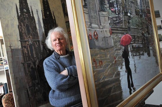 London born Ken Howard is renowned as a painter of scenes in London, Cornwall and Venice. A Royal Academician and liveryman and freeman of the City of London, Howard was the Official War Artist to Northern Ireland in 1973 and 1978 and President of the New English Art Club from 1998 to 2003. He once got told off for painting in Trafalgar Square and of his style, he once commented: “I was brought up in London surrounded by railway yards and factories. This has very much influenced the use of horizontal and vertical structures and lines in my work. I am not a landscape painter, but rather a vertical horizontal and linear painter, which is why I have a passion for the lines that occur within my studios, and include them in my paintings. When I study a model, I think of that figure not in rhythmical terms, but in vertical or horizontal positions and planes”.