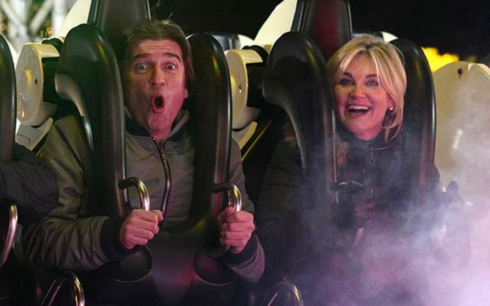 Publicity loving Anthea Turner and policeman biter fiancé “giggled like teens” as they “hit the rides” at Winter Wonderland on Boxing Day