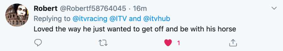 One Twitter user responded: “Loved the way he just wanted to get off and be with his horse” whilst another concluded: “Bob is wonderful, be like Bob.”