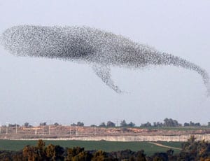 Taken by someone named Amir Cohen, the image of the migrating birds flying in the form of a whale is quite spectacular. It is captioned: “There’s a star-ling whaling in the sky”.