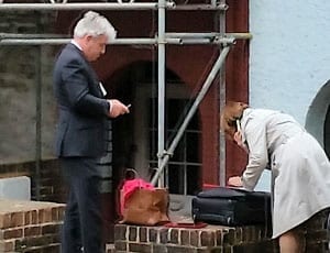 In the main image, Bercow is snapped loitering on a pavement with a female companion and a suitcase. As the duo opened and closed a suitcase and busied themselves using their smartphone devices, passers-by stopped to ask to be photographed with the Speaker of the House of Commons.