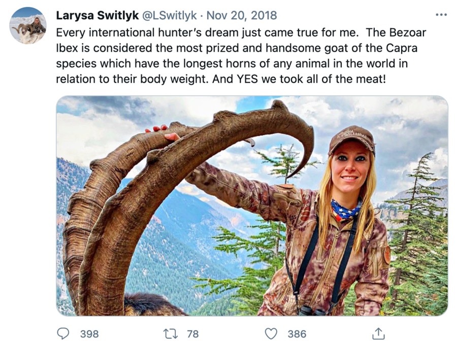 As the ‘Guardian’ report on trophy hunters flocking to Sudan to shoot rare ibex, we remind the public to support our petition to put a stop to mentally unhinged ibex slaughterer Larysa Switlyk
