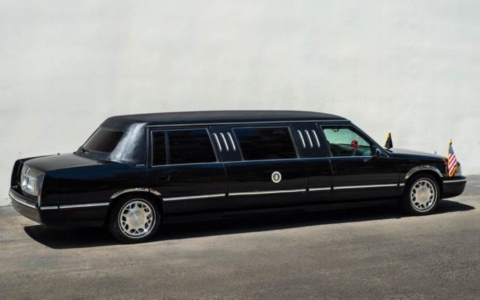 Featuring six doors and capable of seating eight passengers, the Tuxedo black with black leather interior “ultimate party wagon” comes with a hidden cocktail bar and entertainment centre. It has removable flag masts and wig-wag headlights and was built in the fashion of President Bill Clinton’s Cadillac One. The car has a total of 66,584 miles on the clock and has been used at functions including the Academy Awards.