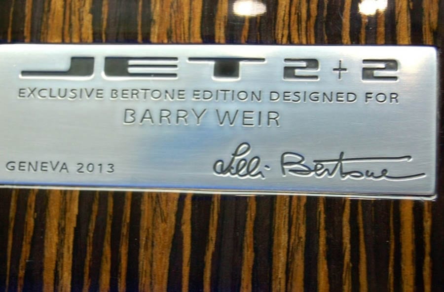Based on the Rapide and built in 2012 on a donor platform, the Jet 2+2 car offered is a shooting brake that was created for an “adventurer, artist and driver of historic motorcars” named Barry Weir by Bertone in conjunction with Aston Martin.