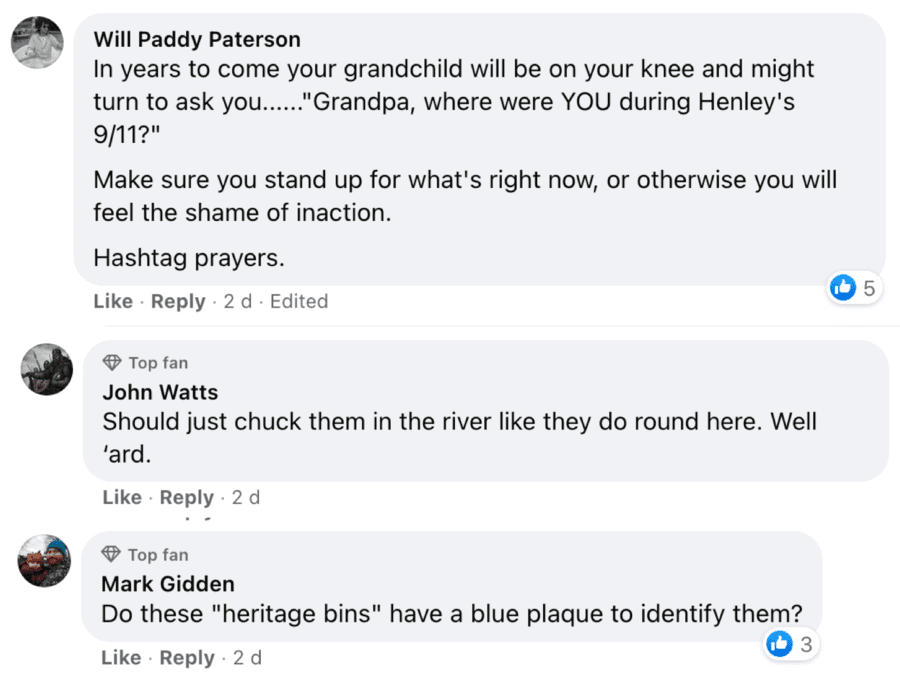 Featured this week on the Facebook group ‘Angry People in Local Newspapers’ and in the Henley Standard and Henley Herald newspapers also, the now widely told tale of “Henley’s 9/11” meets “Bingate” (as it has been branded) provides illustration of how small-minded busybodies can cost a community a fortune and divide its occupants.