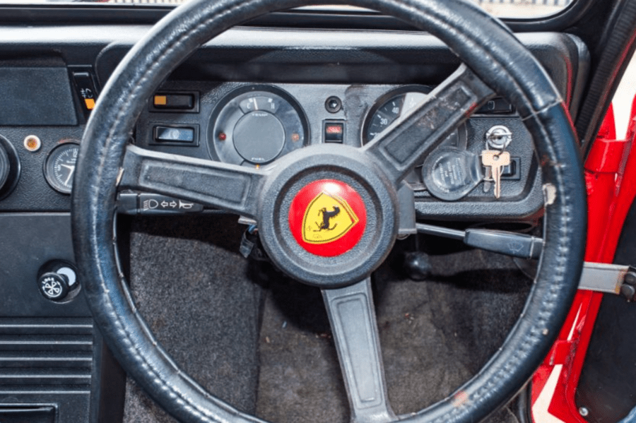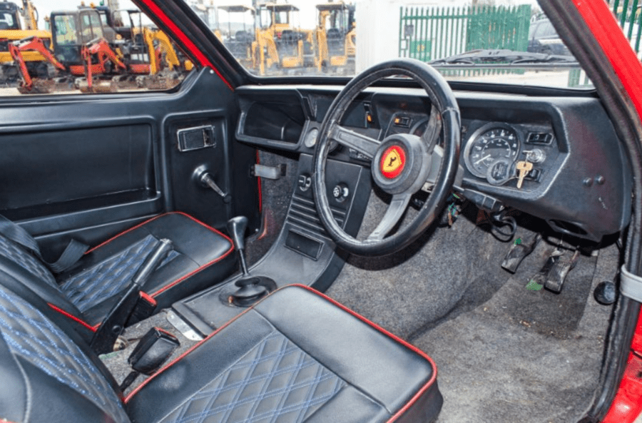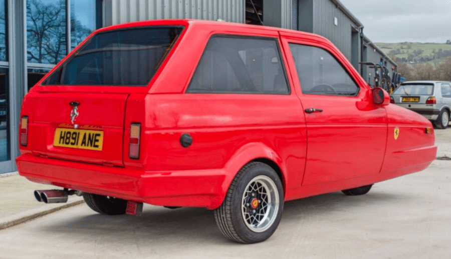 Offered by Gateway Auctions and described as “a unique Reliant built as a Ferrari tribute,” the 1990, 850cc two-door saloon has 97,200 miles on the clock and has allegedly had at least £5,000 ($6,000, €5,600 or درهم22,100) spent on it repainting it in what they term “Ferrari ‘Rosso Corsa’ paintwork.”