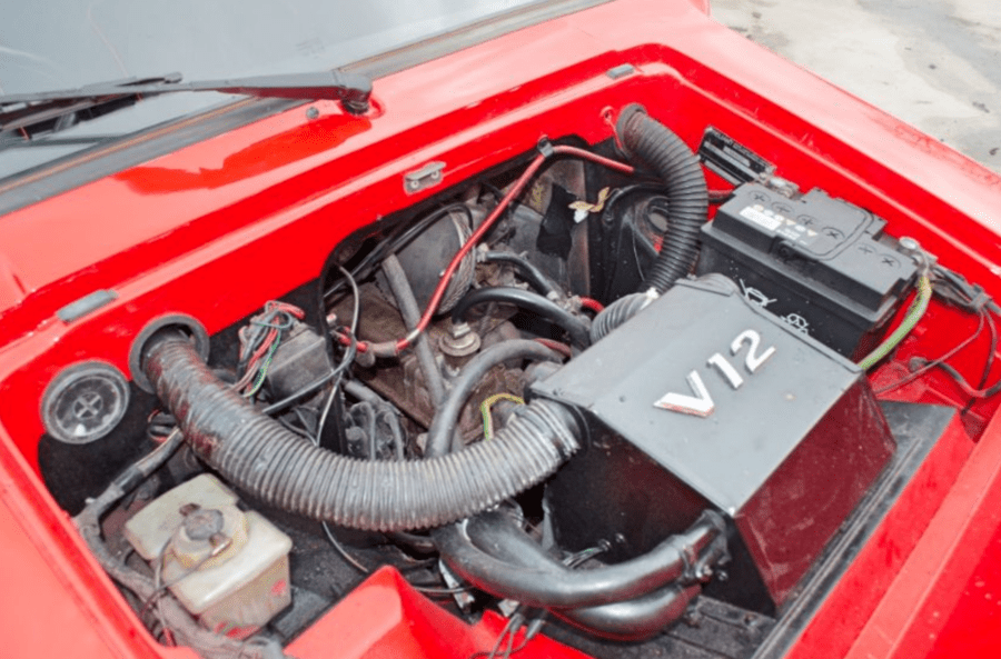 “Under the bonnet everything looks clean although don’t let the Ferrari V12 badge fool you. When asked the 850cc engine fires into life with a pleasing rasp and pulls (as well as can be expected) well in all four gears, handles and stops as well as three-wheel vehicle can be expected.”
