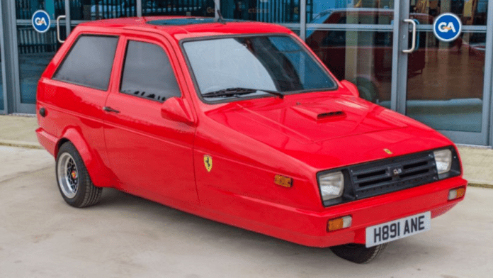 They say there are people who have “champagne tastes on a beer budget” and “caviar tastes on a tuna fish budget,” but now there’s an opportunity for someone to have “Ferrari tastes on a Reliant Robin budget” with the auction of an example of the latter made up to look like the former.