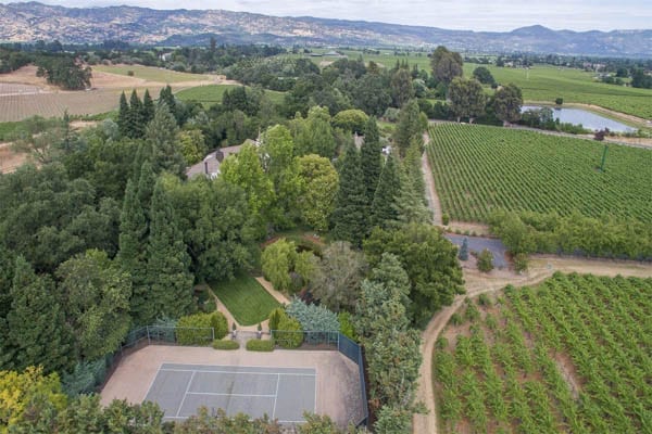 Also known as Meadowbrook Farms, the 27-acre estate comes with 17 acres of Cabernet Sauvignon vines and a vast 9,733 square foot house built in 1970. Aside from featuring the most chintzy décor in the land, the residence includes 4 bedrooms, 4 bathrooms and 2 partial bathrooms. There is also a stable block, a carriage house, a guest house and a tennis court.
