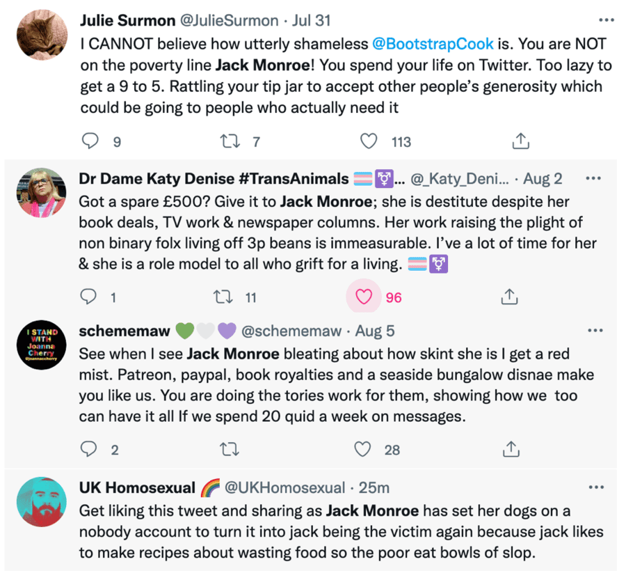 In patronising the poor, bombastic bully and bore Jack Monroe yet again shows her truly nasty colours; here is a pontificating pillock who helps utterly nobody (apart from her not-so-sorry self)