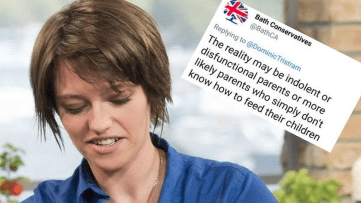Trending on Twitter this morning after quite rightly being called out for disgustingly suggesting those on a budget “tip [canned] spaghetti hoops into a sieve and gently rinse them to get rid of the tomato sauce” and then microwave and “enjoy immediately” with “a pinch of pepper,” here is a patronising cretin who previously got herself into a spat with an equal twerp, Tory MP Lee Anderson – a moron who believes a family of four can be fed on a daily budget of 30p.