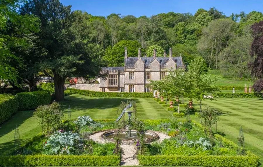 Grade I listed Jacobean manor house on the Dorset-Somerset border for sale for the price of 170,000 bottles of gin; it comes with its own distillery and a private car museum also