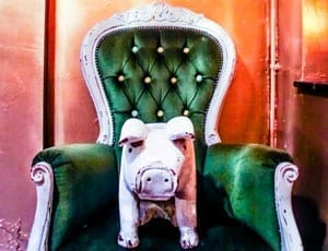 The Lucky Pig in Fitzrovia reminded me of the time Paris Hilton purchased a pet pig as her latest accessory in 2009. PETA fired off the following statement: “calling the hotel heiress a “wretched example” treating animals like they are disposable as her friends and lovers.