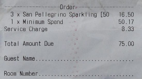 Property buying agent Heaton, who was attending a business meeting, was “bemused” by this and asked if it was correct. He was told that after 4pm, the hotel has a minimum spend of £25 per person so alongside £5.50 per bottle of water, the bill included £50.17 for the minimum spend and a service charge of £8.33.